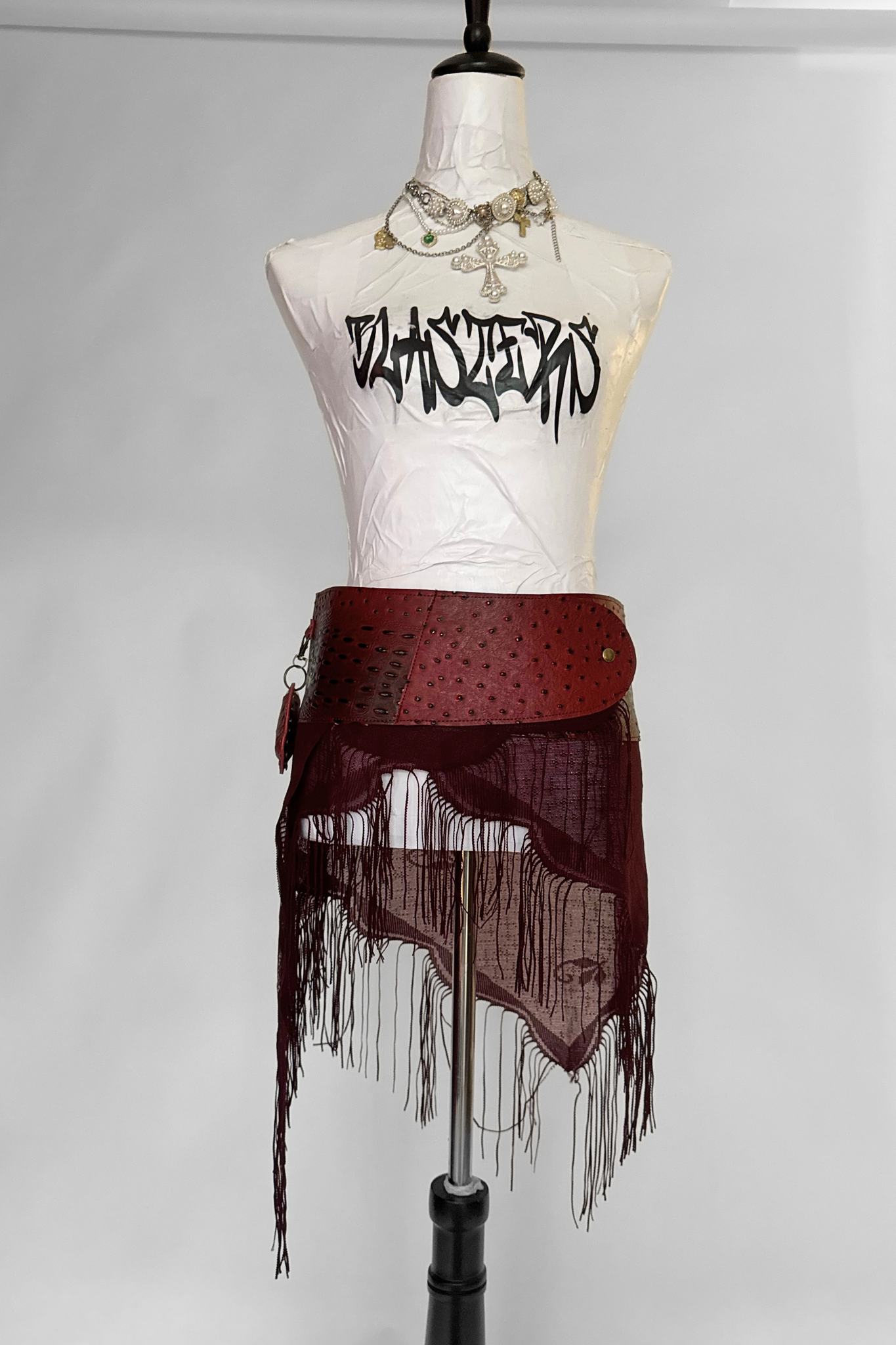 One-of-one mini skirt made from reclaimed leather and vintage materials. A true statement piece handmade in NYC.