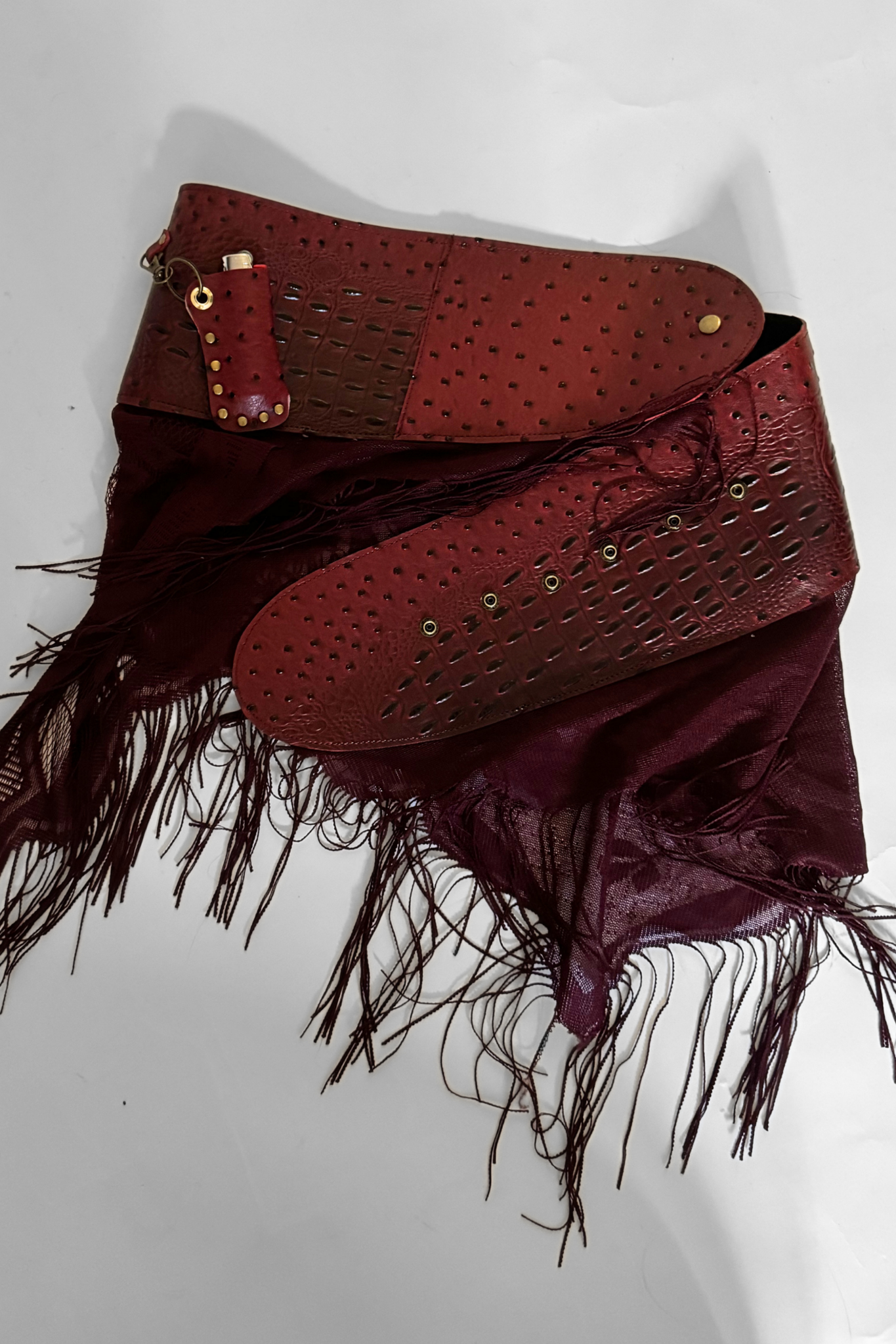 BELTED MINI — RED CROC / RED LACE FRINGE