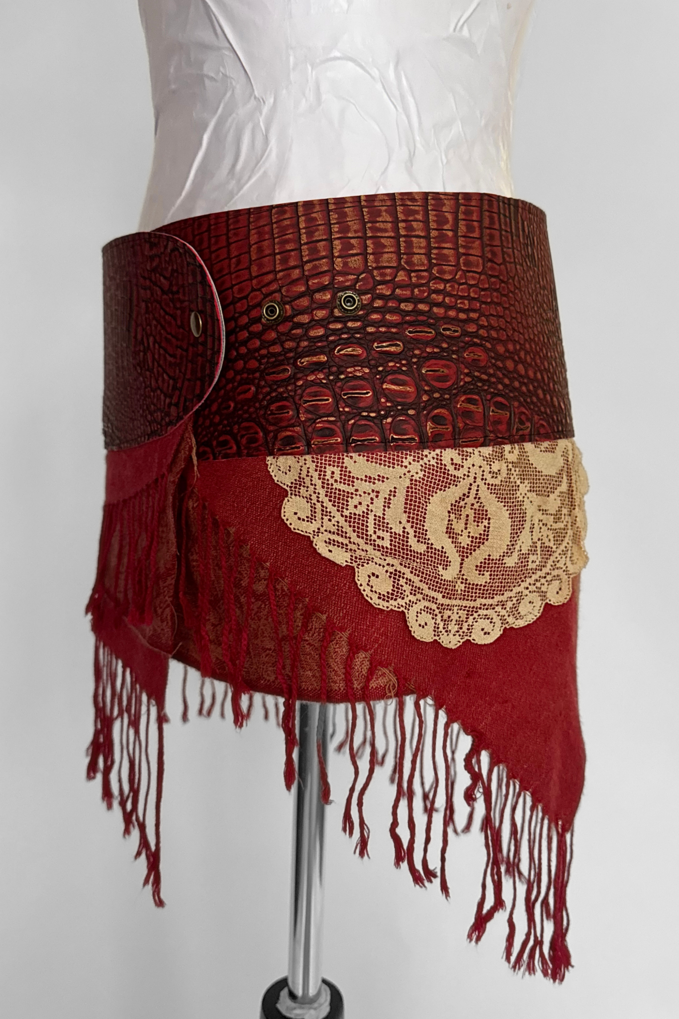 BELTED MINI — RED CROC / RED FRINGE