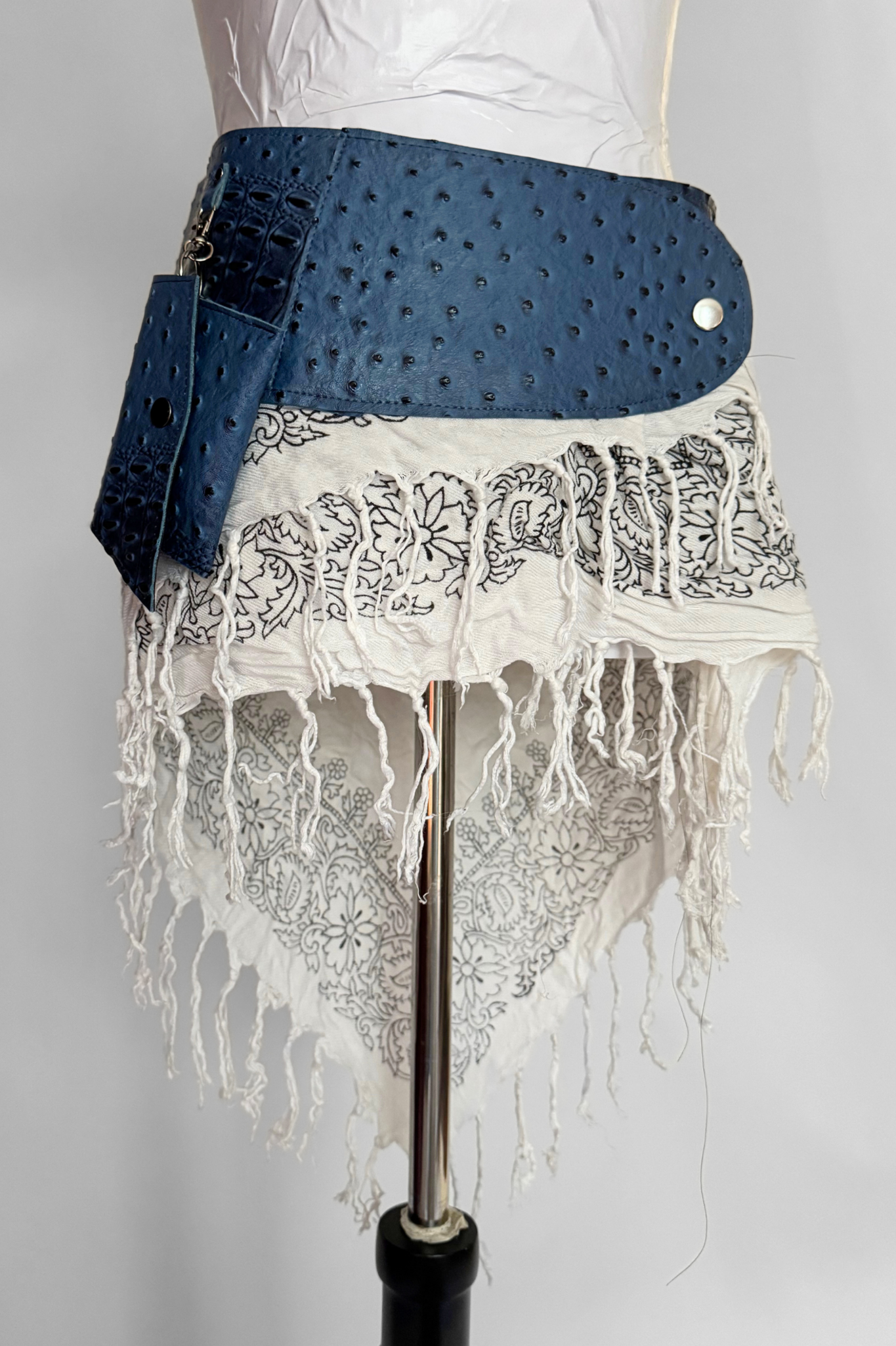 One-of-one mini skirt made from reclaimed leather and vintage materials. A true statement piece handmade in NYC.