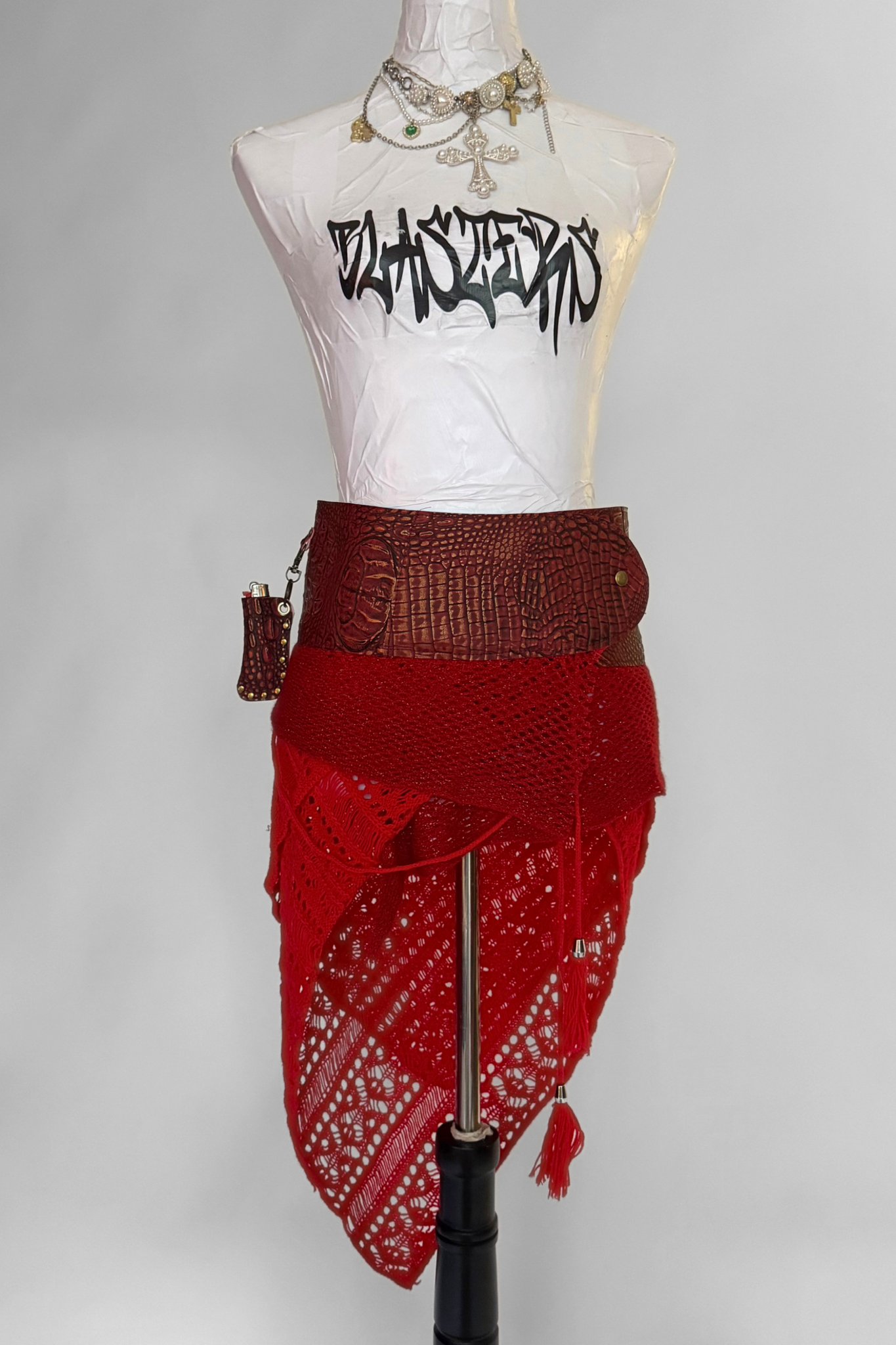 BELTED MINI — RED CROC / RED KNIT